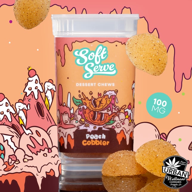 Take a bite of your favorite juicy peach and cinnamon-spiced crumble dessert with every gummy bite! Bursting with juicy peach, hints of vanilla flavors each bite is rolled in a real cinnamon sugar coated topping. So go ahead and indulge in this homemade peachy perfection dessert classic now in gummy form. Infused with Soft Serve signature THC oil, each gummy is a 10mg serving. Made from all natural and vegan ingredients.